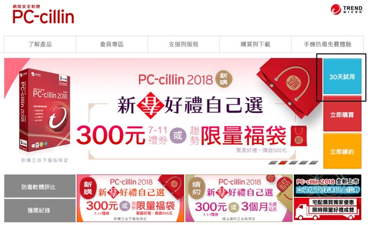 因為在2016年與2017年,我都使用PC-cillin做為我的防毒軟體,包括下列3項: