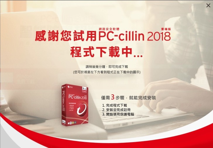 在按下存檔後,會出現感謝您試用PC-cillin 2018的畫面。