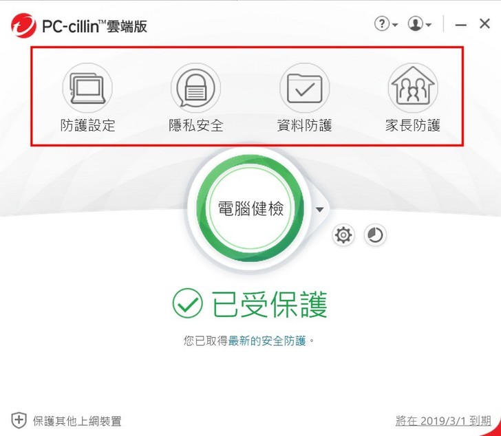 點進去後,其實可以發現PC-cillin 2017的功能非常多,而且都有大大的圖示,以及清楚的分類。