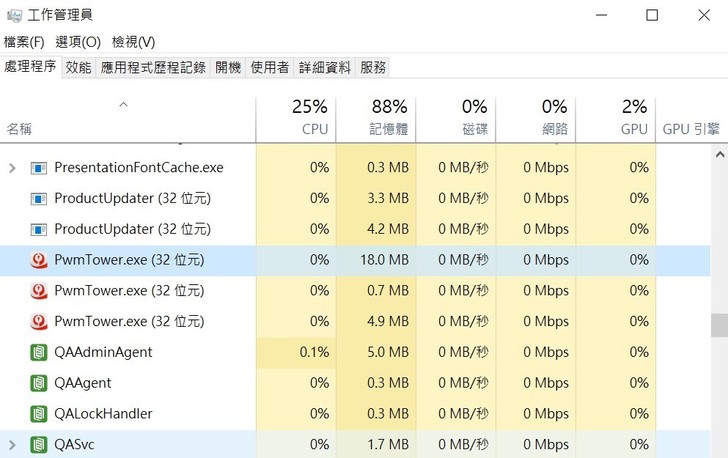 在軟體運作的過程中,我可以一直看到PC-cillin 2018的CPU使用率幾乎一直都是在「0%」,請看: