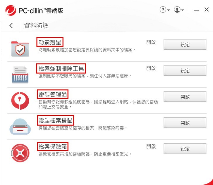 PC-cillin 2018的資料防護功能可以用「既深又廣」來形容。