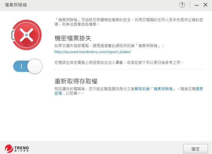 甚至你電腦遺失,也能封鎖檔案保險箱。