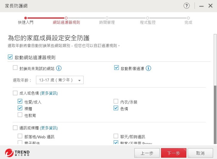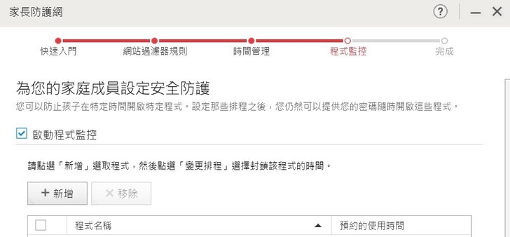 還有一個很特別的功能,就是你還可以啟動程式監控,防止孩子在特定時間開啟特定程式。