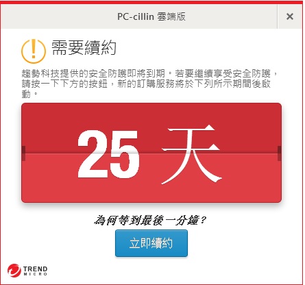 ▲ 根據防毒軟體不滅定律,時間到了就要續約儲值。