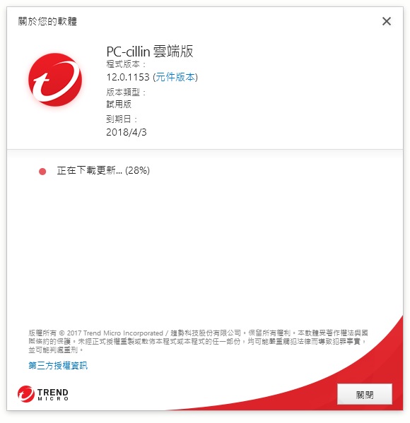 ▲ 完成安裝PC-cillin升級到2018版,先選擇試用版,等快到了試用截止時,再輸入購買的序號,這樣就能夠多用一個月,這個小密技不要告訴別人喔。