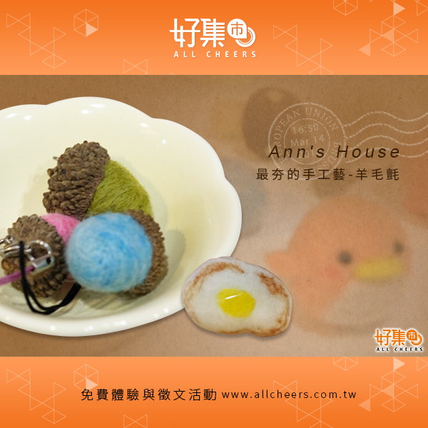 【Ann's House】最夯的手工藝-羊毛氈 輕鬆簡單一次完美上手!毛茸茸的小玩意 好玩又紓壓 創作出獨一無二的小飾品!◎羊毛氈手作課程(荷包蛋或橡果 二選一)乙堂,市值$300元◎到店免費體驗 https://goo.gl/7jLCi2