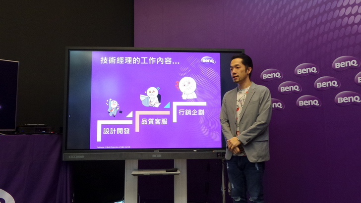 【▼】接下來不免是工商服務的宣傳時間,由BenQ主力的大型液晶技術經理JC為大家介紹。BenQ技術經理不只本身要有RD的技術,而且還要管到品質客服與行銷企劃,PO出工作內容後,會不會不敢有人敢應徵了呢?不過看JC侃侃而談,似乎很樂於工作,想必BenQ是個幸福企業。