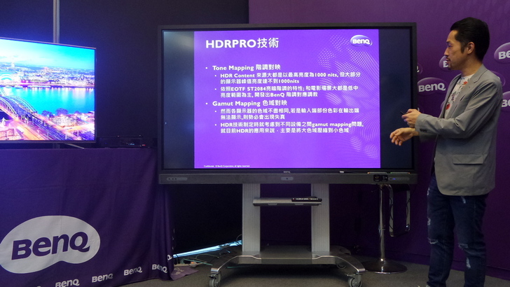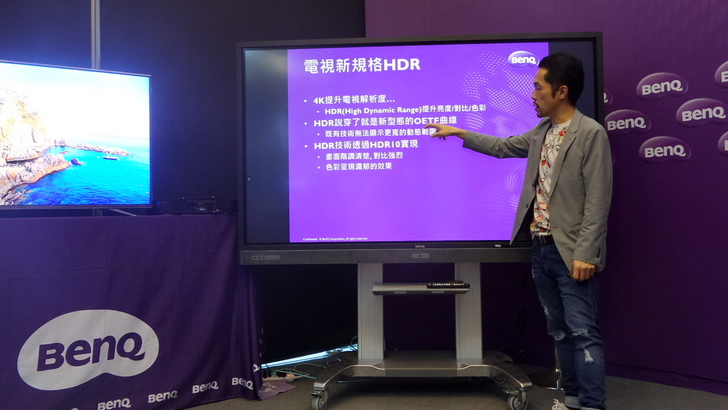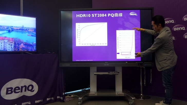 【▼】而電視新規格莫過於加上HDR(High Dynamic Range)的效果了,可以間接提升亮度/對比與色彩,JC表示就是新型態的OETF曲線,小編有聽沒有懂,不過BenQ的這個技術是透過HDR10來實現色彩濃郁、對比強烈以及更清楚的畫面階層。