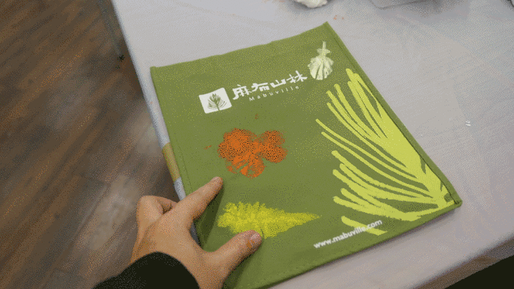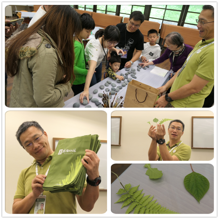 【▼】樹蛙哥哥真的無所不能,繼生態員之後,連美勞課也很上手,難道BenQ員工每個都那麼全能阿~大家先選好要畫的石頭與葉子外型後,樹蛙哥哥發給每人一個麻布山林獨家的手提袋,作品可直接帶回家呢!