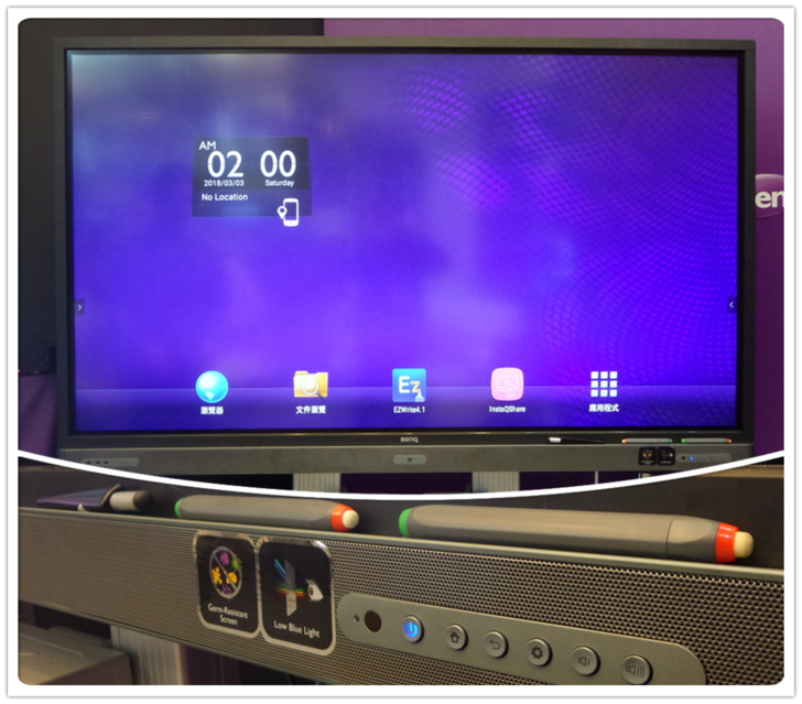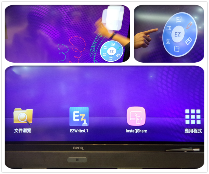 【▼】這個電子白板主要功能App為EZWrite與InstaQShare,其中EZWrite 4.0 無須連接外部電腦,可直接開啟 Microsoft 文件與圖片,會議中直接在文件上標記註解,而InstaQShare是針對無線投影設計出的解決方案,還有類似浮動工具欄的功能,可以手代筆進行操作,像擦黑板就只要用手揮一揮就可以擦掉,還挺方便的呢!