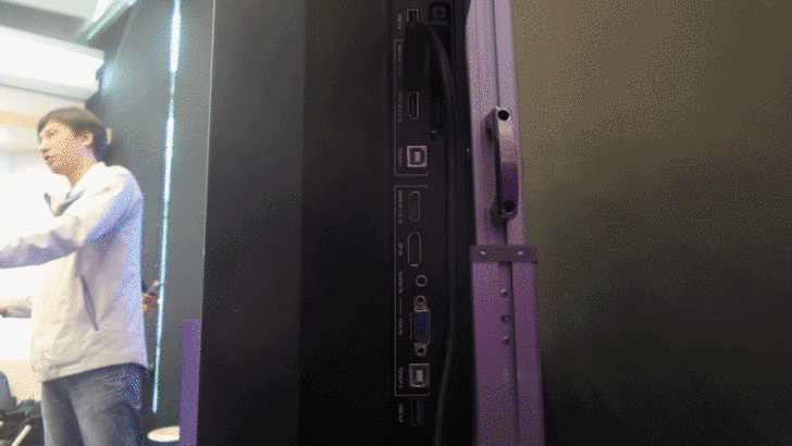 【▼】後端的基本I/O介面有VGA、HDMI、Display Port、Slot-in-P、OPS Slot、Composite Video In、USB Player (Photo, Video)、RS232與RJ45 連接埠等。不過這台大型互動觸控顯示器是定位在商務型的產品線上,若家中個人想要買,可與小編聯繫,小編會盡力幫您爭取的,