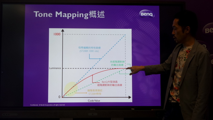 一、Tone Mapping階調對映:BenQ以EOTF ST2084亮暗階調的特性,設計出適合電影場景的中低亮度範圍。
