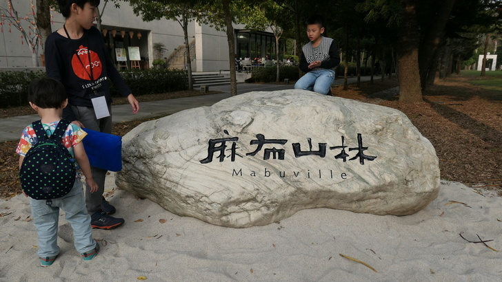 【▼】另外一提的是,小編之前搭台灣好行去新竹綠世界看羊駝與奇珍異獸,一天來回真的很累,若知道距離麻布山林這麼相近,就可請BenQ董a幫忙訂房間了。一進園區內可以看到最顯著的大石印著麻布山林與英文Mabuville,小朋友們都迫不及待跳上去擺好Pose拍照了。