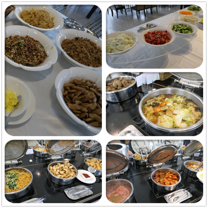 【▼】早餐屬於中西式合併的自助餐,有沙拉、火腿、炒麵、稀飯、包子等,飲料更提供咖啡、奶茶、柳橙汁,應有盡有,真的相當豐盛。