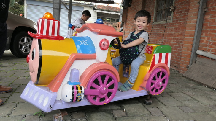 【▼】飯後餐廳外也有復古的搖搖車,瞧小朋友玩得多開心。VIP老爸心想現在帶你來玩,以後等你長大也要成為BenQ VIP帶老爸來玩唷~