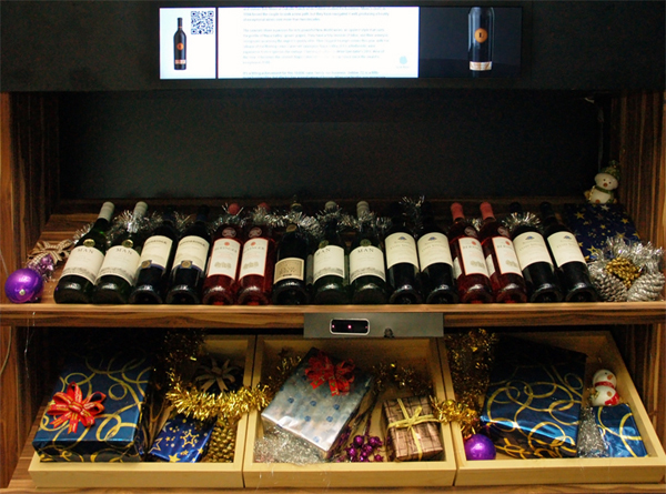 ▲ 電子看板運用的層面很廣,也可使用在酒類的介紹、年份、產地、等級...等等,我想說不定也可透過觸控、感應SENSOR、掃QR Code,來獲得更進一步的資訊。