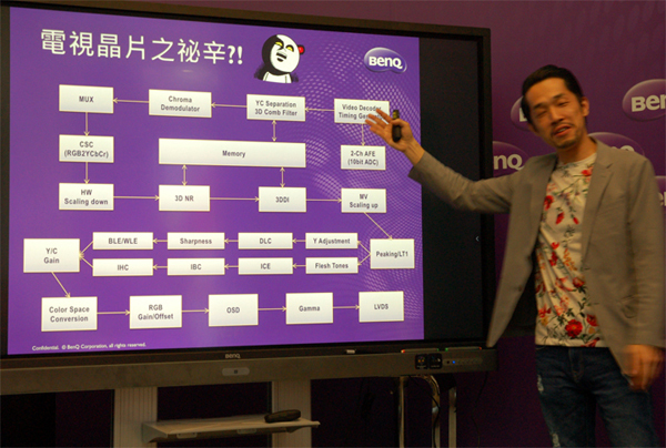 ▲ 頒完獎後,緊接著由這位神似周杰倫,又有點像陳為民的技術經理,來為我們介紹他主要處理的業務,以及說明BenQ在液晶電視爲滿足用戶的需求,在研發技術上所下的苦心與特色。