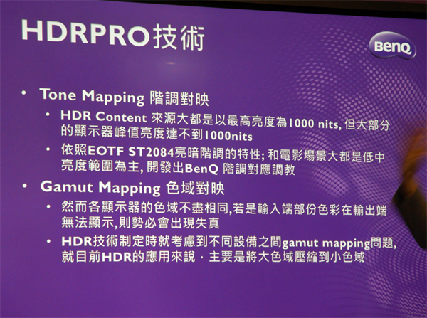 ▲ HDR是各家廠商想辦法提高影像的動態範圍為目標,並且相繼投入高動態範圍技術,BenQ也朝這方向努力開發,因應不同的場景對應不同階調。
