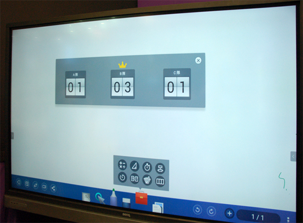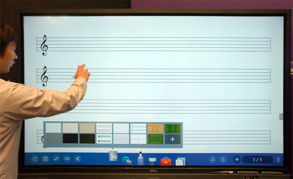 ▲ 看完技術經理針對液晶電視精采的說明後,可以發現他用來介紹的這台電視,外型有點像是白板,原來這是一台86吋4K大型互動觸控顯示器,它有內建EZWrite軟體,讓音樂老師教樂譜。