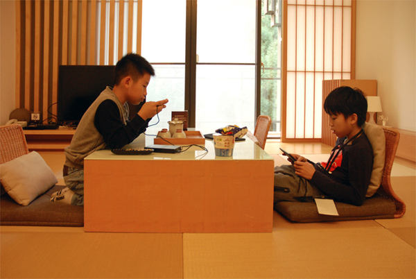▲ 進入房內,映入眼簾的就是和式套房,才剛放好行李,這兩位小朋友就自行就定位開始掌上世界。