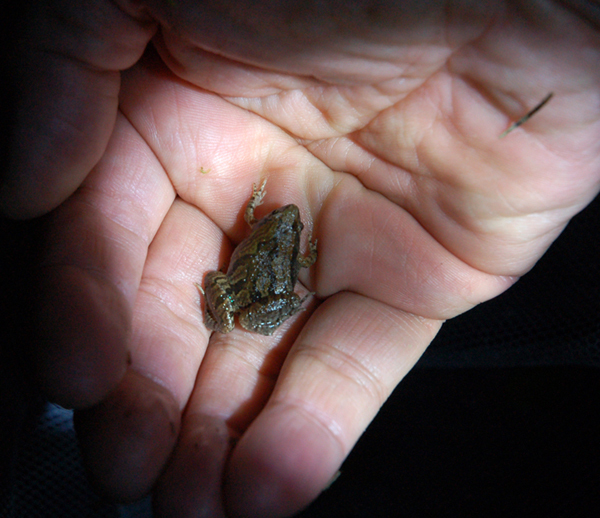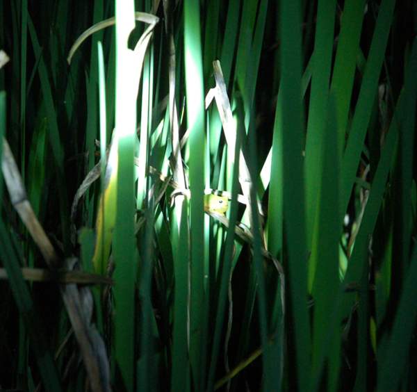 ▲ 接著第二位上場的就是台灣常見的『小雨蛙』,一般小雨蛙喜歡躲在草根、土縫或石頭底下鳴叫,所以常常只聞其聲,不見其影,所以不容易觀察,今天真的很幸運!