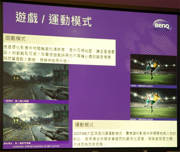 ▲ BenQ還開發遊戲/運動模式,再遊戲時,可提高暗夜場景,增加物體輪廓清晰度,而運動模式下,可提供最佳的畫質,讓物體清晰明亮且立體。