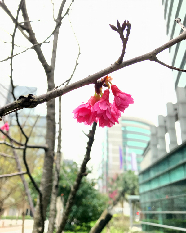 ▲ 企業大樓周圍還有栽種八重櫻,或稱牡丹櫻、多瓣緋寒櫻,約每年二、三月開花!想賞櫻的朋友看這邊,這裡就有櫻花囉!可惡~真想拿出野餐墊來席地而坐~哈哈!