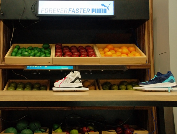 ▲ 待活動開始前,稍微逛了一下這間實體情境展示間,現場有BenQ幫運動品牌大廠PUMA 設計的電子看板,智慧型的電子看板算是很夯的產品,它可說慢慢取代傳統靜態燈箱的工作。