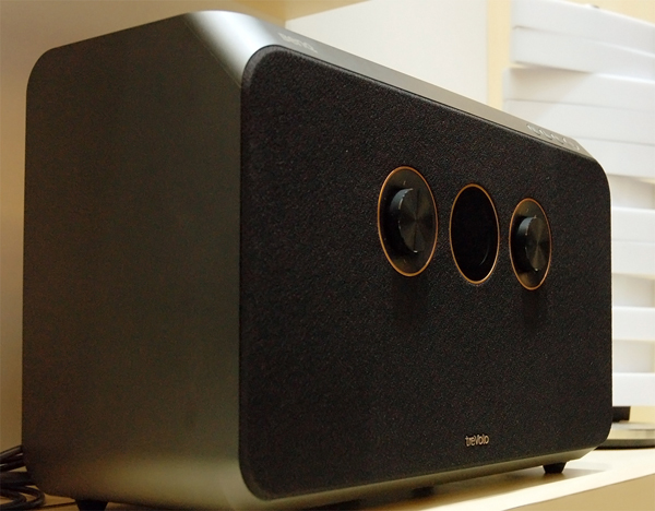 ▲ treVolo 靜電藍牙喇叭已推出第二代產品,上圖是treVolo 2,採用與treVolo S相同的雙大出音孔設計,加原木支架設計,除了美觀外,還可減少共振讓音質清澈透明。