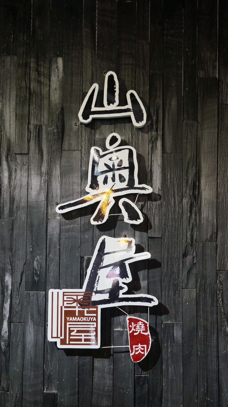 「山奧屋」來自於一個有趣的典故。在日本明治維新時代之前,規定家家戶戶不能吃家畜,人民偶爾真的很想吃肉,就躲到山林野外裡偷偷享用,而「山奧屋」在當時指的就是「藏在山裡吃肉的地方」,也代表「珍饈盡在此地」之意。所以為了重現當年那種偷偷摸摸躲在山中小屋吃肉的感覺,所以門口弄得不太明亮,牆壁也弄得有木頭質感嗎?但是現在的「山奧屋」是家燒肉餐廳,大家不用偷偷吃肉了,光明正大就能大快朵頤!