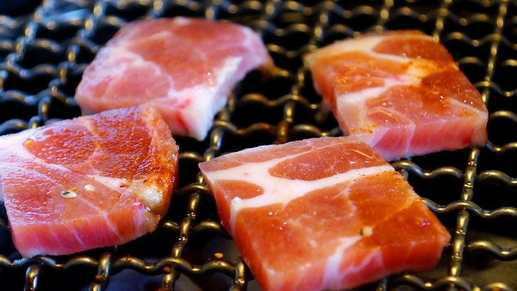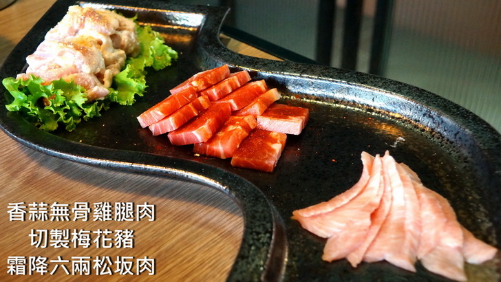 喝了兩碗醇厚的雞湯,吃了一些沙拉,肚子不爭氣的咕嚕咕嚕的叫了起來。趕快來烤肉吧。首先上桌的是肉類三品,從左至右是香蒜無骨雞腿肉,切製梅花豬,霜降六兩松阪豬。