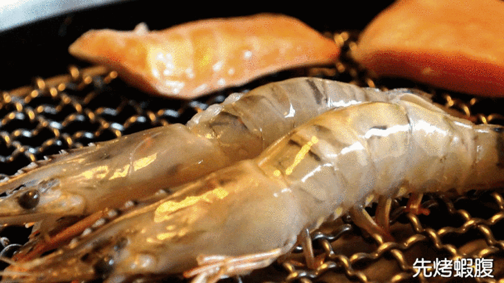 大草蝦的部份則是要分三階段烤,先烤蝦腹,其次側烤蝦身,最後烤蝦背。