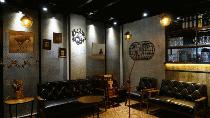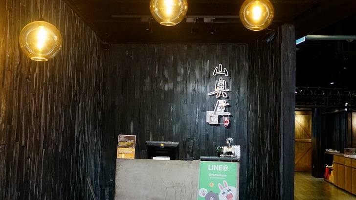 進入山奧屋之後,屋內依舊是黑色系的裝潢,牆面刻意做得像木頭的樣子,搭配不太明亮的黃色鎢絲燈,很與眾不同的感覺啊。
