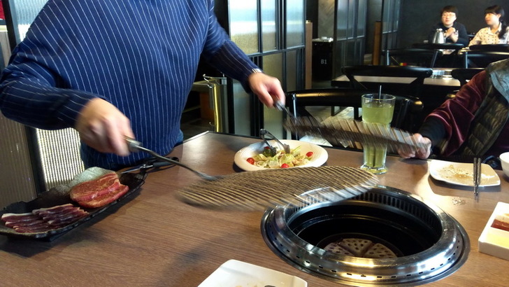 大概是看我烤肉的技術太爛,店家出手幫我們烤肉耶,幫我們烤肉之前先換烤網,其實前面也換過幾次烤網了,我算了一下,本次用餐換了五次烤網,服務很勤快。