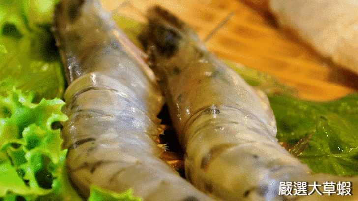 最後上場的是海鮮,有生干貝、嚴選大草蝦、活凍軟絲及鮭魚肚,套餐可以選兩種,老媽選了大草蝦與鮭魚肚。