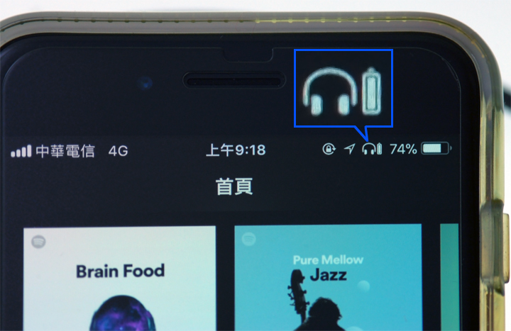 ▲ 使用iPhone的人可以通過從主屏幕移動到屏幕左側來查看連接設備的充電狀態,也可以與大多數藍牙設備一樣,直接在手機的右上角就可知 R72E的電量使用狀態。