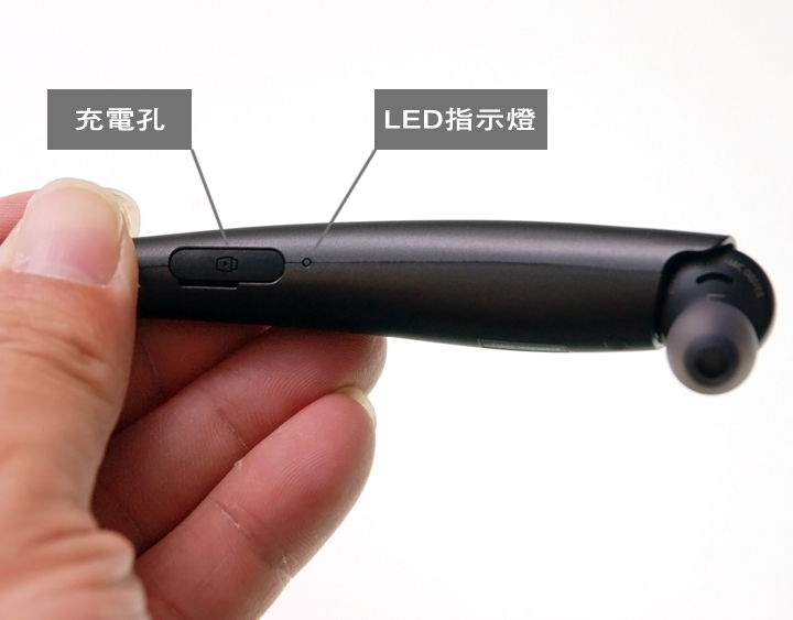 ▲ 如果以耳機的 L側的配置來看,機身具備充電孔、以及 LED指示燈號。