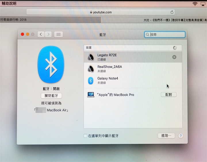 ▲ 例如要與筆電連線時,同樣開啟藍牙,搜尋到Legato R72E後進行【配對】,就可以開始使用。
