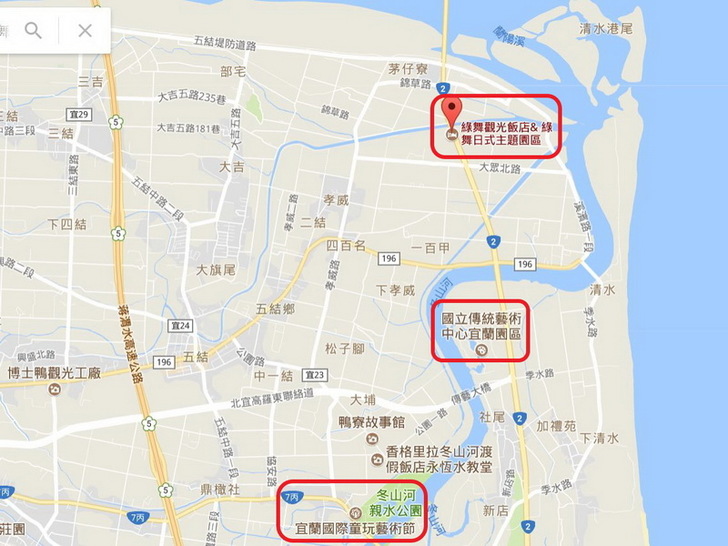 如果大家從台北出發,我建議先去傳藝中心,冬山河遊覽,傍晚入住「綠舞國際觀光飯店」,效法日本人先去泡個湯,然後吃晚飯,享用一下飯店設施後,睡前再泡個湯。第二天上午早餐後,參觀「綠舞日式園區」,進行文創體驗,用過午餐後退房再去宜蘭各地逛逛,例如參觀金車酒廠啊,去橘之鄉買蜜餞啊,在羅東夜市吃晚餐後再回家。「綠舞國際觀光飯店」的地圖在此,其實很好找啦。