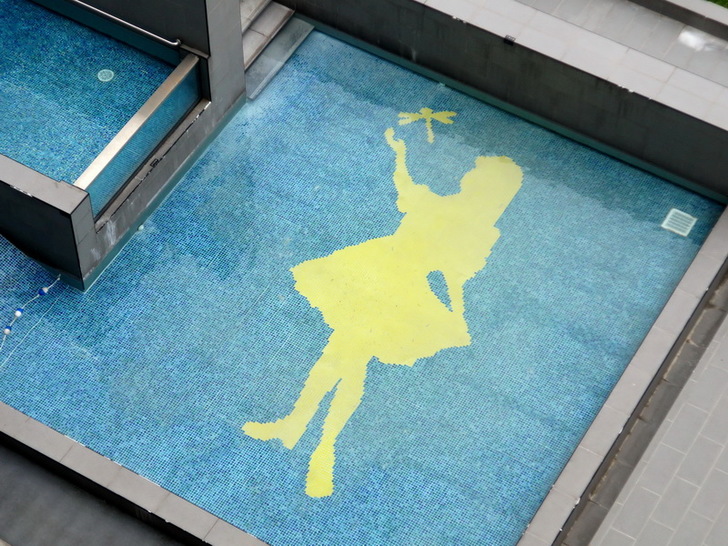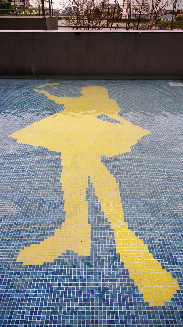 特別值得一提的是,兒童戲水池裡就有一個超大的企業形象標誌!!不過「飯店企業形象標誌」這幾個字實在太繞口,所以我決定打算叫她綠舞小妹!