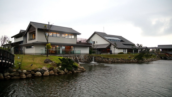 照片中右邊的建築是「舞饌日式料理」,左邊的就是「遊客中心」,「遊客中心」的咖啡座就在湖邊,如果天氣好的時候,我真心推薦坐在湖邊喝一杯咖啡。我看了一下價目表,拿鐵一杯120元,我覺得咖啡搭配日式庭園美景,蠻划算的。