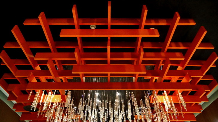 到現在才發現,頭頂上的水晶燈有鳥居的意象