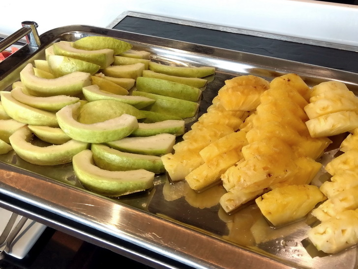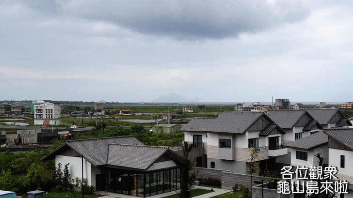 在等餐廳上菜的時候,我發現現在天氣較好,可以看到龜山島!!顧不得要吃午餐,先衝出去拍照在說。沒想到在快離開飯店的時候被我拍到龜山島,隨然還是灰濛濛的,但我已經很開心了。如果是住在面海套房的旅客,你在房間陽台就可以看了,如果是像我住山景套房的,從餐廳露台朝Villa偏左方向就可以看得到!