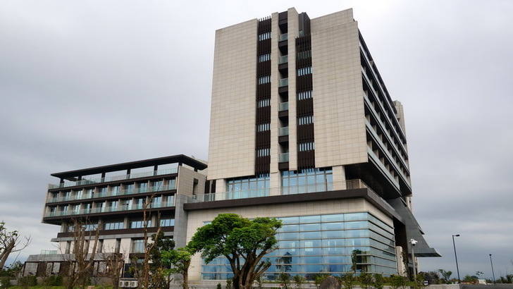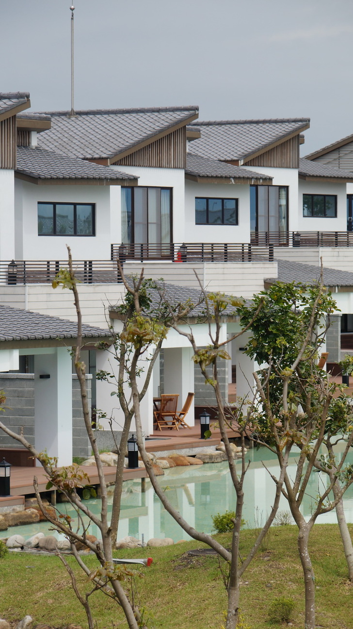 經過1小時15分的車程,我們來到位於宜蘭縣五結鄉錦眾村的「綠舞國際觀光飯店」。車子從馬路進入園區內,草坪,綠樹,嶄新的旅館大樓與數棟高檔Villa進入眼簾。