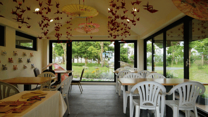 美術館的一樓有一個褟褟米區,在這裡可以進行日本抹茶體驗。同時一樓也有宜蘭本土的青花瓷展示。