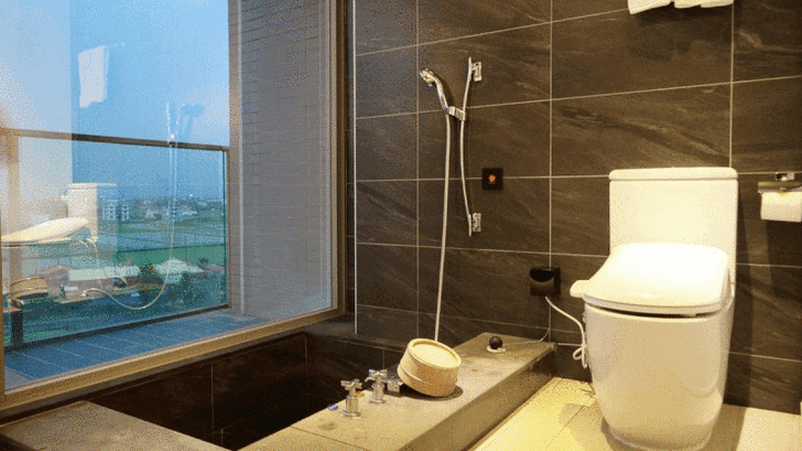 浴室也很大間,特別的是採用和式降板浴池,泡湯時還可以一覽中央山脈山景與蘭陽平原的田原風情。