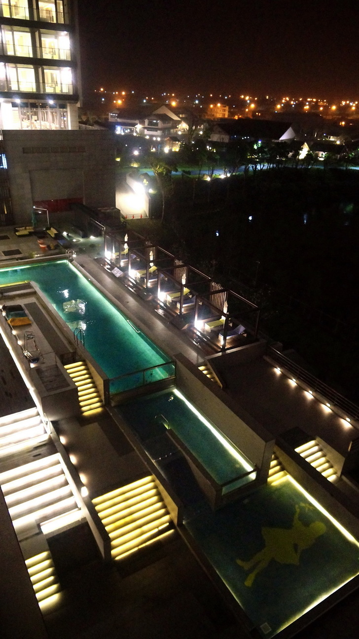 不過戶外泳池還是沒有人,可能今天天氣不好,風有點大,大家都在房間裡休息吧。