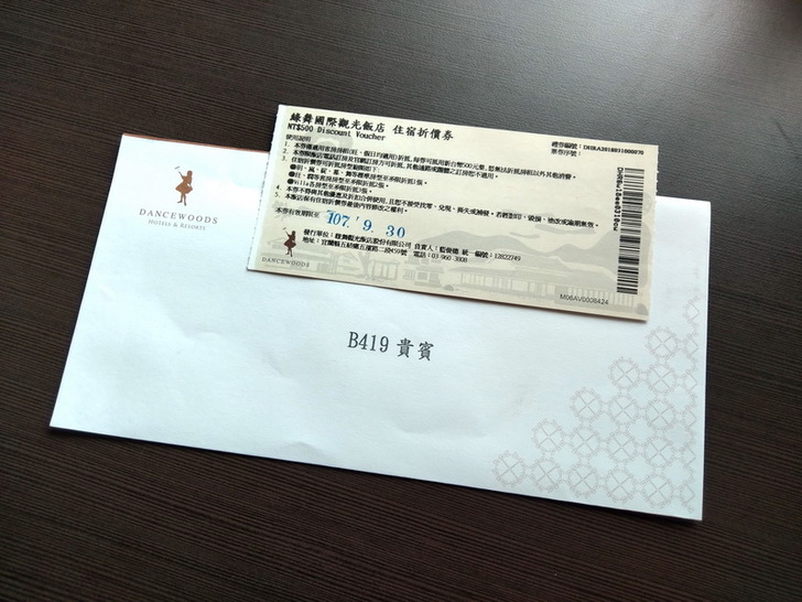 至於住房的房客在退房時,也有得到一張住宿折價券,可抵用500元,雖然金額不高,也是一番心意囉。