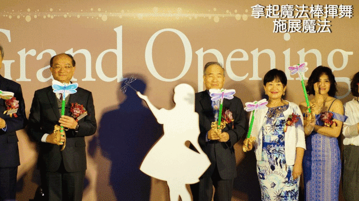 最後進行一個點燈儀式,董事長與貴賓們手持魔法棒將飯店的企業形象標誌點亮,「綠舞國際觀光飯店」開幕成功!!