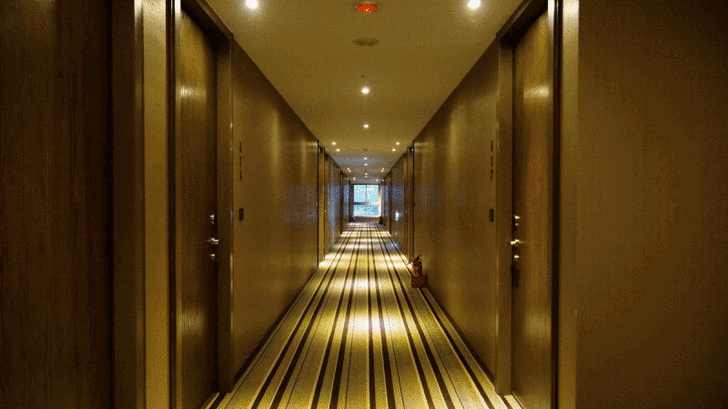 除此之外,你從走道向外看,外面也看到到像瀑布般的流水。